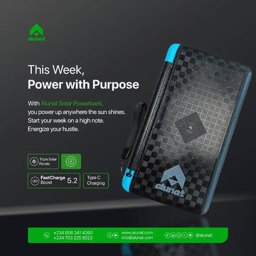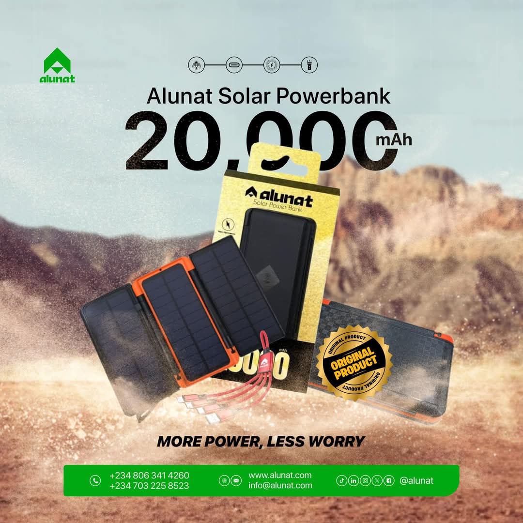 With Alunat Solar Power Bank, power outages won’t slow you down! Stay charged, stay connected, stay unstoppable! Get your devices charged with our ALUNAT solar power bank.